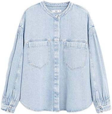 4.4 out of 5 stars 2,758. Quick buy puff sleeve floral print peplum ruffle top was $48.00 , is $12.00 High quality blue denim fabric. This denim shirt features a classic collar, a button closure on the front, puff sleeves and a double button cuff. For a relaxed day, pair a white puff sleeve shirt with denim jeans and your fave white trainers for a killer look.