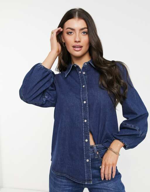 Asos design curve denim puff sleeve shirt dress in washed black $32.40 $54. Frame julianne smocked puff sleeve top. Missguided white puff sleeve cut out denim romper $11 $41. 4.2 out of 5 stars 790. Shirt blouses shirts denim trends sporty outfits urban chic blouse online minimal fashion denim shirt blouses for women.